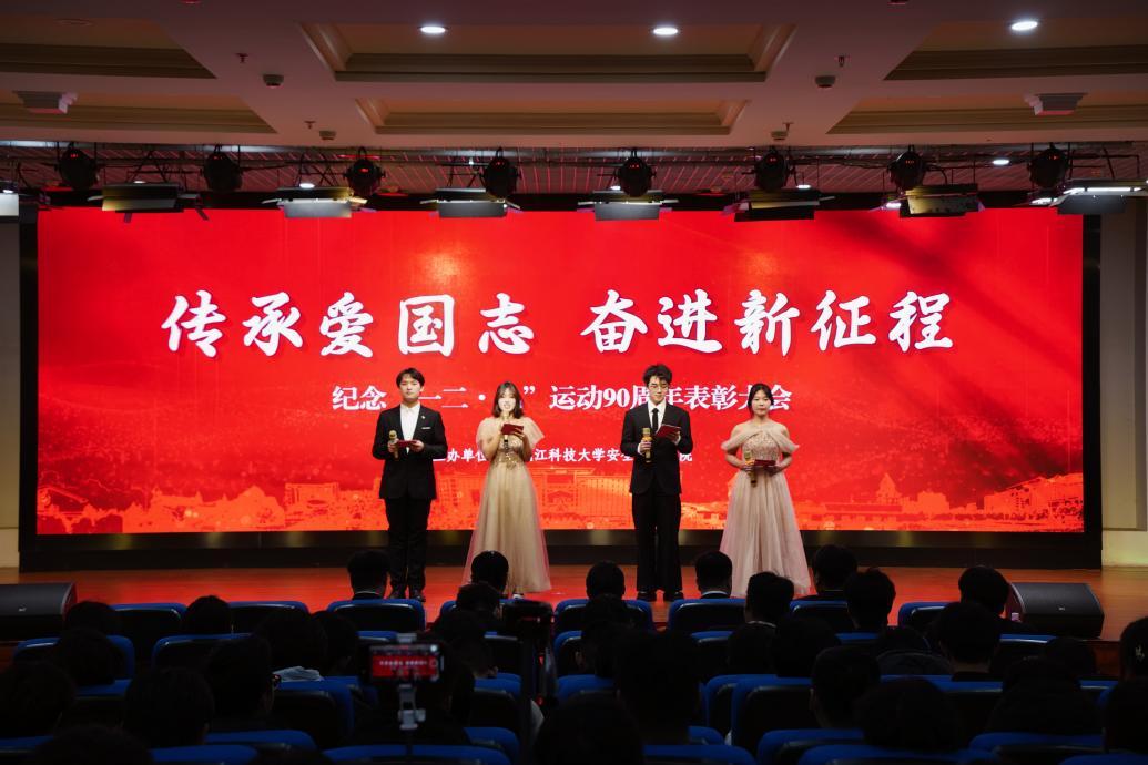 为纪念“一二·九”运动90周年,引领青年学生铭记历史、缅怀先烈,弘扬爱国主义精神,担负起新时代赋予青年的重要使命,12月7日,安全工程学院召开了“传承爱国志,奋进新征程”纪念“一二・九”运动90周年暨“先优”表彰大会。学院全体辅导员、学生组织主席团成员、全体受表彰先优代表及2025级全体新生参加了本次大会。表彰大会开幕大会在致敬历史、礼赞时代的文艺演出中拉开帷幕。歌曲串烧《麻雀》《千山万水》《光辉岁月》《如愿》,以动人的旋律叙事,串联起从个体拼搏到集体奋进、从铭记历史到圆梦盛世...
