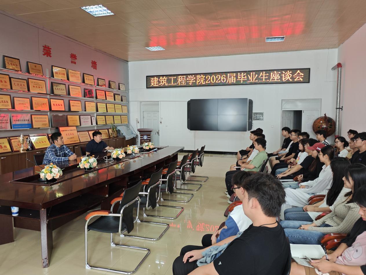 22/ 2025-09建筑工程学院召开2026届毕业生就业座谈会与动员会为全面启动2026届毕业生就业工作,抢抓求职关键期,近日,建筑工程学院先后组织开展分批次毕业生就业座谈会与全体毕业生就业动员会,通过“先问需、再赋能”的精准服务模式,为毕业生就业保驾护航。学院通过精准摸排,把准毕业生“需求脉”。在前期召开的分批次就业座谈会上,学院聚焦不同专业、不同求职阶段的毕业生群体,开展了“面对面”的深度交流。老师们不仅详细了解了学生在求职方向、信息获取、简历制作及面试准备等方面的困惑,还认真听取了大家对学院就业服务的意见建议。针对考研、考公、企业求职、自主...