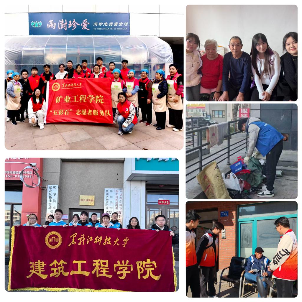 31/ 2025-10学校各级团学组织广泛开展为老服务“金晖行动”为弘扬中华民族孝亲敬老传统美德,引导广大青年志愿者在为老服务中担当作为,营造养老孝老敬老良好社会氛围,重阳节前夕,我校各级团学组织以“弘扬孝亲敬老美德、共建老年友好社会”为主题,聚焦“精准助老、文化润老、权益护老”三大主线,集中开展青年志愿者为老服务“金晖行动”,用青春热情为银发群体送去温暖与陪伴。"情暖夕阳"送贴心:志愿服务进家门,架起连心桥矿业学院团委、材料学院团委、电信学院团委、外国语学院...