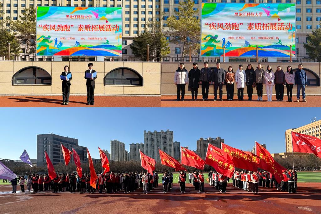 11/ 2025-11学校开展第十五届“疾风劲跑”大型竞技类素质拓展活动为深入学习贯彻党的二十大精神,落实《全面加强和改进新时代学生心理健康工作专项行动计划(2023—2025年)》的相关要求,着力提升大学生心理素养与团队协作能力。11月9日上午,由学生处心理健康教育中心主办、计算机与信息工程学院承办的黑龙江科技大学“疾风劲跑”户外素质拓展活动在体育休闲文化广场顺利举行。本次活动精心设置了“十人十一足”“车轮滚滚”“旱地龙舟”“障碍接力赛”“摇绳穿越”等多项富有趣味性与挑战性的团队项目。赛场上,来自全校15个学院的代表队斗志昂扬,在全情投入与协同拼...
