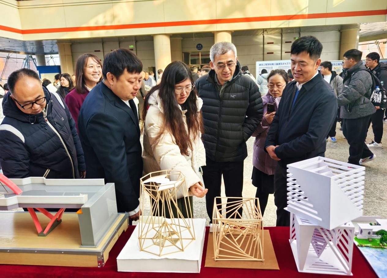 19/ 2025-11建筑工程学院举办第八届建筑文化艺术节暨第二届专业美育展为扎实推进“五育并举”育人体系建设,将校园文化活动与专业教育深度融合,11月18日中午,建筑工程学院在教学主楼阳光大厅举办第八届建筑文化艺术节开幕式暨第二届专业美育展。创新创业学院院长谭平、学生处处长宋玉彬、评估中心主任刘付刚、教务处副处长关凤岩、校团委副书记马紫微以及建工学院党政领导出席开幕式,各党支部书记、教研室主任、专任教师和学生代表共同参加了开幕式。活动由建工学院党委副书记展跃主持。对优秀学生代表予以表彰开幕式上,学院总结了学风建设月系列活动,并对9名在就业引领、学风示...