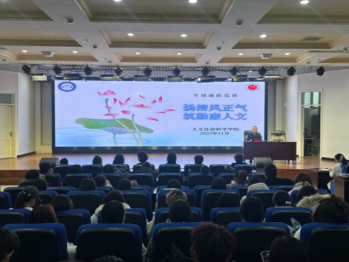 27/ 2025-11人文学院“扬清风正气 筑勤廉人文” 专题廉政党课开讲11月24日上午,人文学院党委书记孙晓辉以《扬清风正气筑勤廉人文》为主题,在朝阳楼0131会议室为全院师生党员、教职工和入党积极分子代表上了一堂生动深刻的廉政党课。讲授专题党课党课紧紧围绕深入学习领会习近平总书记关于加强党的作风建设的重要论述、巩固拓展深入贯彻中央八项规定精神学习教育成果、锲而不舍落实中央八项规定精神、推进作风建设常态化长效化等中心内容,结合学院实际,旁征博引历史典故、时事政治、鲜活案例等,从深刻认识作为一名合格党员的标准、充分理解强化作风建设的丰富内涵、筑牢拒...