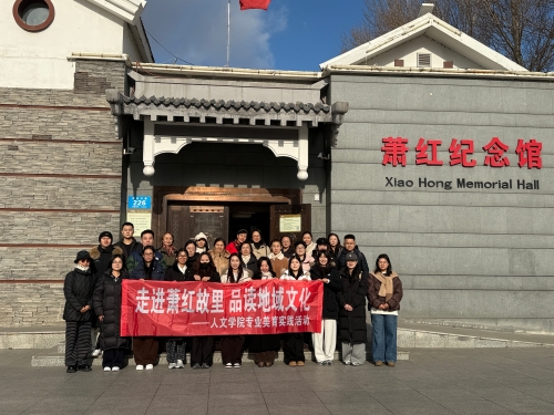 25/ 2025-11以黑土文化润心 融课程思政于行——人文学院赴萧红故里开展专业美育实践活动视频为深化专业美育教学成效,深度领悟课程思政“三全育人”格局与“五育并举”教育方针,搭建“课堂理论+地域文化+价值引领”三位一体的专业美育特色实践平台,引导同学们在文化溯源中提升审美素养、涵养人文情怀、筑牢思想根基,实现知识传授、能力培养与价值塑造的有机统一,人文学院于11月20日开展以“走进萧红故里品读地域文化”为主题的专业美育实践活动,人文师生共同踏上旅程,共赴一场跨越时空的文化对话与思政研学之旅。实践活动合影萧红故里是承载东北地域文化、人文精神与文学记忆的重要思政教育载体...