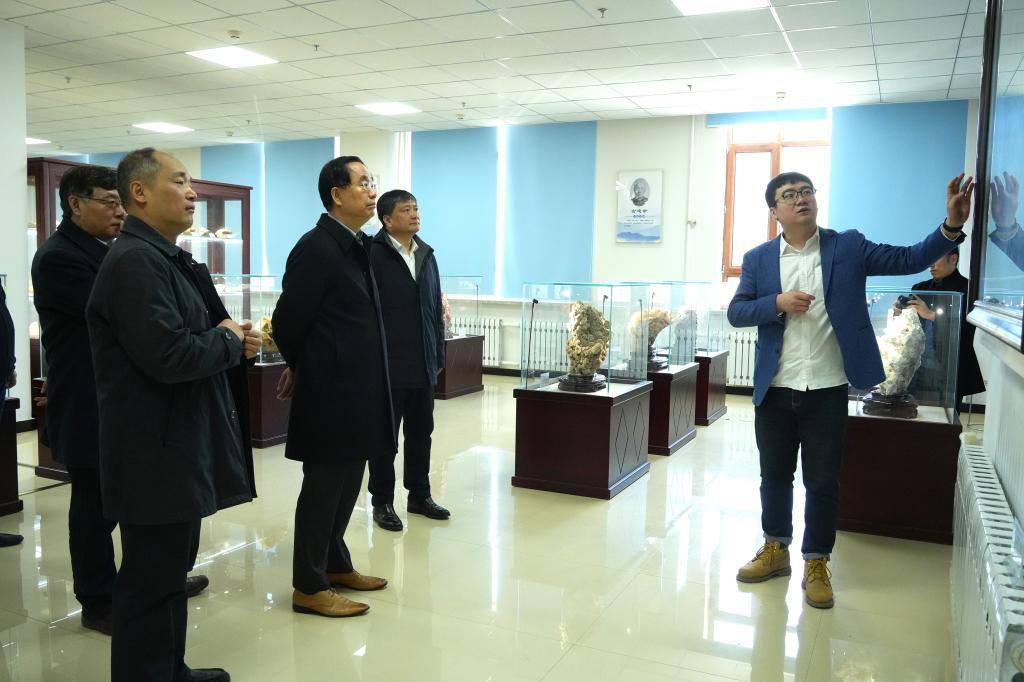 刘清侠在校长孟上九陪同下相继参观了石墨研究院、校史馆、地质馆、模拟矿井、智慧矿山学科交叉研究院、洁净煤中心等,对母校多年来的发展建设情况进行深入了解。在参观中,刘清侠对我校石墨烯研究团队、交叉学科团队的科研成果表现出了浓厚的兴趣;他来到校史馆,在一张张老照片前驻足良久,滔滔不绝地讲述起了当年在母校读书时经历的人和事,感慨母校70多年办学历程中的发展变化,同时也为自己是黑龙江科技大学的毕业生而感到自豪。来到洁净煤研究中心,他详细地了解中心开展的科研项目及师资配备情况,就褐煤的综合利用及其分离研究相关问题,刘院士表达了自己的真知灼见,他表示今后将竭尽所能为母校发展贡献力量。