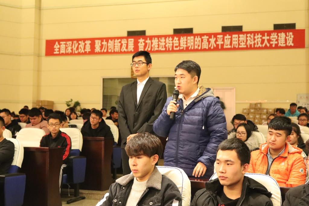 互动环节,同学们积极踊跃地提问。“您是怎么看待这次十九大报告中的新时代?”郝丽影书记回答说,“中国已经进入了新时代,矛盾也已经发生了改变,我们的工作进入了新时代,对青年学生来说,你们的学习也进入了新时代,更应该把握机会,创造属于你们的新时代”。志愿者协会的学生结合志愿服务与郝书记交流“在您这种舍小家为大家的精神下,十年如一日的繁琐的社区工作您是怎么坚持下来的?”郝丽影书记说,“社区中的许多事是非常琐碎的,要充满热心和爱心,我们要立足的目标就是全心全意的为百姓服务,在第一时间解决居民的事情。”同时,郝书记也与青年学生分享了许多工作中的经验与感受,她就像一抹暖阳,温暖着大家,更像知心大姐姐,拉近了她与青年学生之间心与心的距离。(周恩远/文)