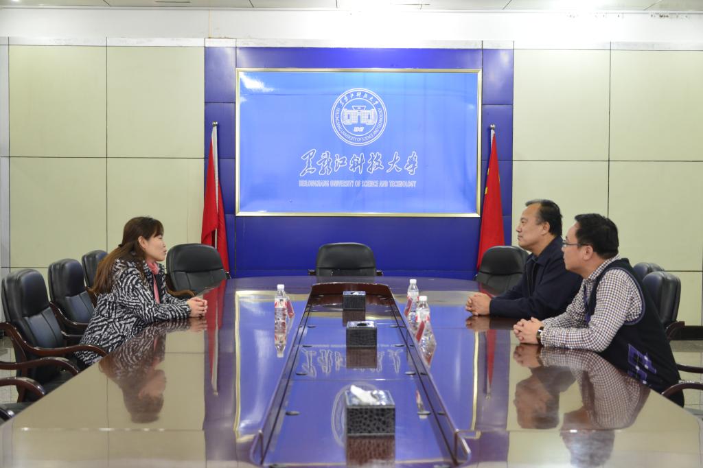 校党委副书记张明华、校团委书记薛立刚与郝丽影交流