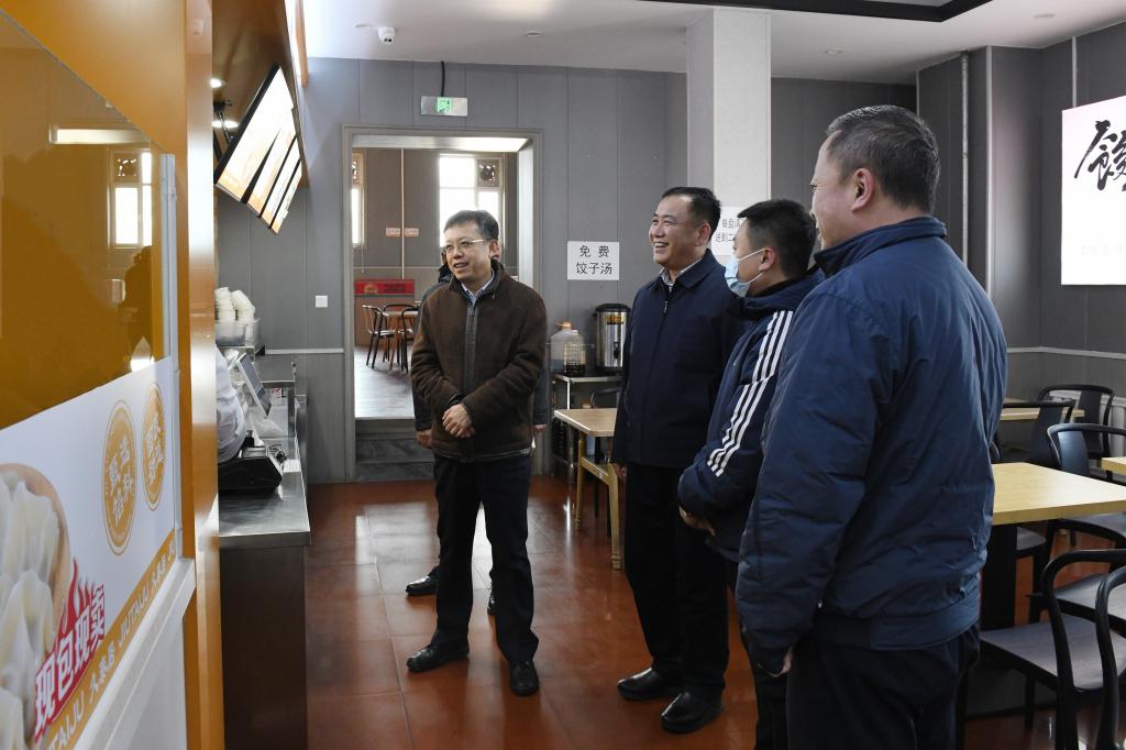 周宏力一行还实地检查了校内超市,详细了解了超市进货渠道、临期食物处理、售卖价格等情况。
