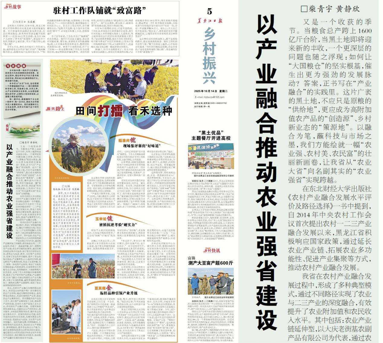 近日,我校管理学院龙江产业振兴研究团队成员柴青宇副教授撰写的《以农村产业融合发展推动我省农业强省建设》一文在《黑龙江日报》刊发。该成果是团队长期深耕农业经济管理领域的重要突破,不仅彰显了团队的科研实力,更以高质量的智力成果为龙江农业强省建设提供了实践路径,充分体现了我校服务地方产业发展的责任担当。