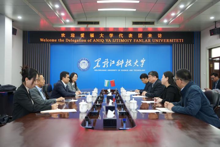孟上九代表学校对来访客人表示热烈欢迎。他详细介绍了我校的办学特色及国际合作的开展情况。他指出,乌兹别克斯坦作为“一带一路”沿线重要国家,矿产资源丰富,与我校相关学科领域具有广阔的合作空间。希望以此次访问为契机,进一步增进两校相互了解,为未来深化合作奠定坚实基础。约夫科切夫·沙赫佐德对我校的热情接待表示感谢,并介绍了爱福大学的办学历史、专业学科设置及对外合作交流情况。他强调,该校高度重视跨学科创新,未来将持续拓展国际教育科技合作网络,期待能够与我校开展多领域、深层次的务实合作。