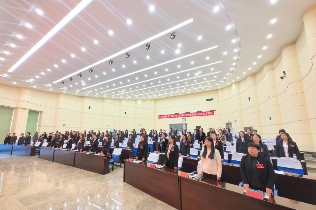 新当选的学校妇联主席谭旭红作表态发言。她表示,当选首届妇联主席深感使命光荣、责任重大,将与全体执委一道,筑牢思想根基、把准政治方向,厚植服务情怀、守护巾帼权益,强化自身建设、提升履职能力,紧紧依靠全校女性师生开创妇女工作新局面,做好“娘家人”,为学校建成矿业特色鲜明的国内一流应用型大学贡献巾帼力量。
