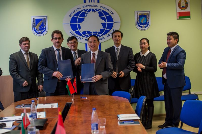 12月6-7日,我校代表团访问了白俄罗斯国立大学,副校长萨福诺夫,外事处长、孔子学院院长、数学与机械系主任、对外俄语系主任等亲切接见了代表团一行。双方介绍了各自学校的办学及国际合作交流情况,并进行了亲切、友好的会谈。双方就机械、矿业、地质、环境、新材料技术领域寻求教育、科研合作项目,本科生教育交流项目,聘请俄语教师,引进来华留学生及互换师生访学,联合申请中国自然科学基金与俄罗斯国家基础研究基金项目事宜进行磋商并达成一致。最后,双方签署了“黑龙江科技大学与白俄罗斯国立大学关于在科研和教学领域的合作协议”。