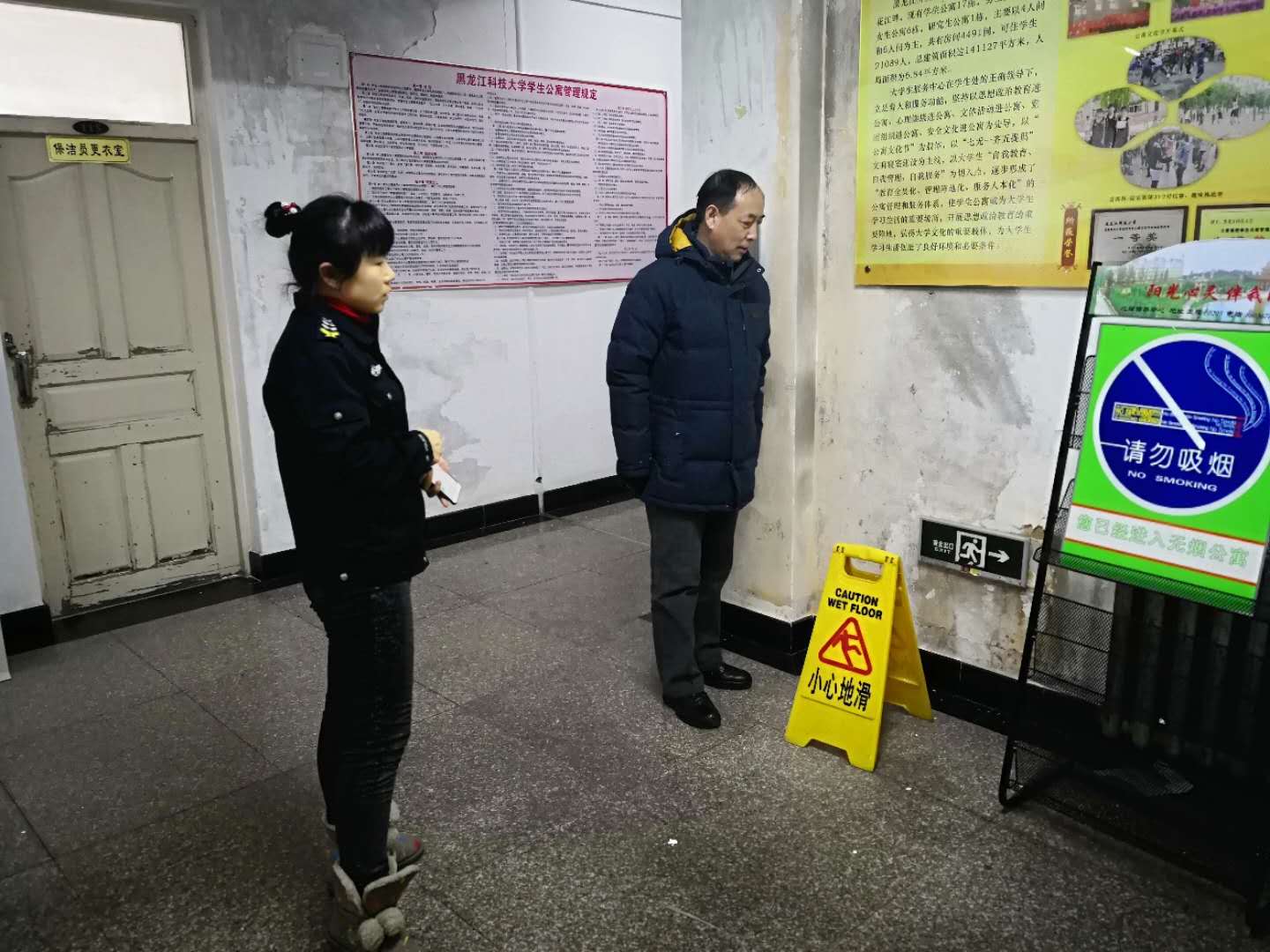 之后,武书记来到学生第10公寓,了解学生公寓供暖设施抢修情况,学生公寓供暖情况。并要求学生处要加强值班巡查,确保及时发现问题,及时科学处置,确保学生正常的学习生活秩序。后勤处、供热中心要总结经验,探索规律,定期检修,确保供暖设施正常运行;要根据天气变化情况,及时科学调整,确保学生公寓正常供暖。