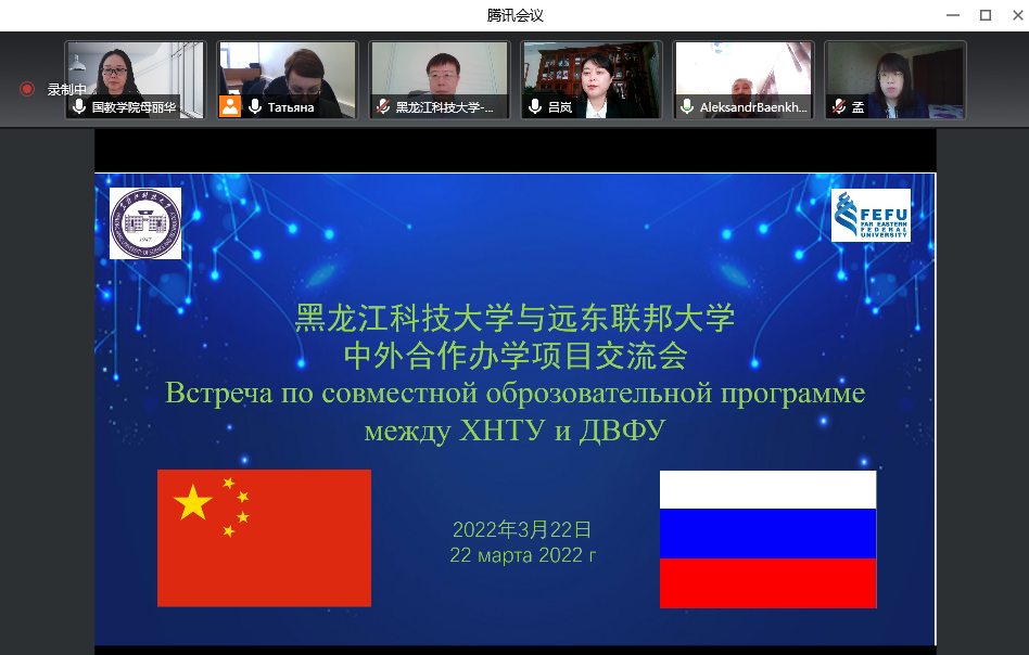 3月22日上午,我校与俄罗斯远东联邦大学举行线上中外合作办学项目交流会。国际教育学院院长兼国际交流合作处处长母丽华、国际交流合作处副处长吕岚、国际教育学院副院长杨兆楠、项目负责人孟丽岩老师代表我校参加会议。俄方由项目负责人亚历山大、项目助理娜塔莉娅、项目管理人塔基杨娜参加,会议由吕岚主持并翻译。