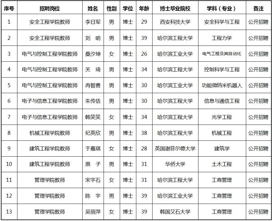 按照《黑龙江省事业单位公开招聘工作人员实施细则》的规定,根据《黑龙江科技大学2025年下半年公开招聘博士教师公告》明确的原则、程序和方法,现将拟聘用人员予以公示。如对公示人员有异议,可在公示期内反映,反映情况和问题必须实事求是,应签署或告知真实姓名、工作单位和联系方式。对线索不清的匿名信和匿名电话,公示期间不予受理。