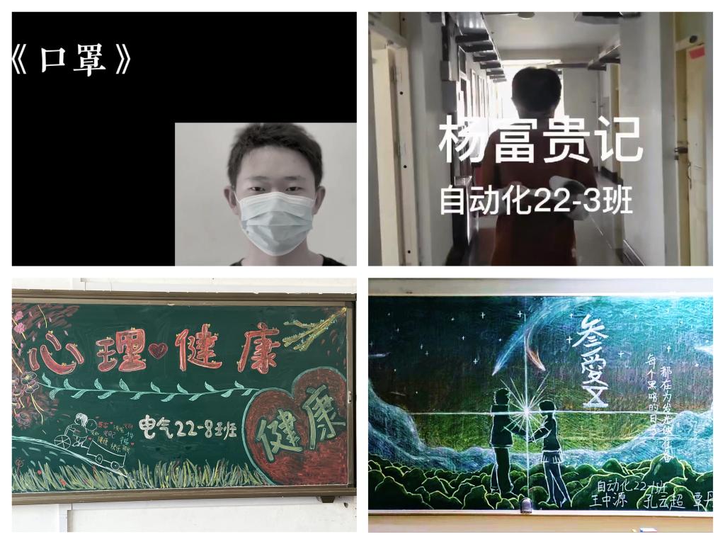 构建平台载体,不断扩大品牌活动影响力。电气学院举办“心剧场”心理情景剧拍摄大赛,以班级为单位征集到23个作品,推选测控22-1班《口罩》、电气22-10班《如果真情不记得》、自动化22-4班《蜕》三个优秀作品报送至学生处心理中心,《口罩》获得校级二等奖;通过开展心理健康主题板报大赛,动员班级成员参与集体创作,在实践过程中提升心理健康互助意识。