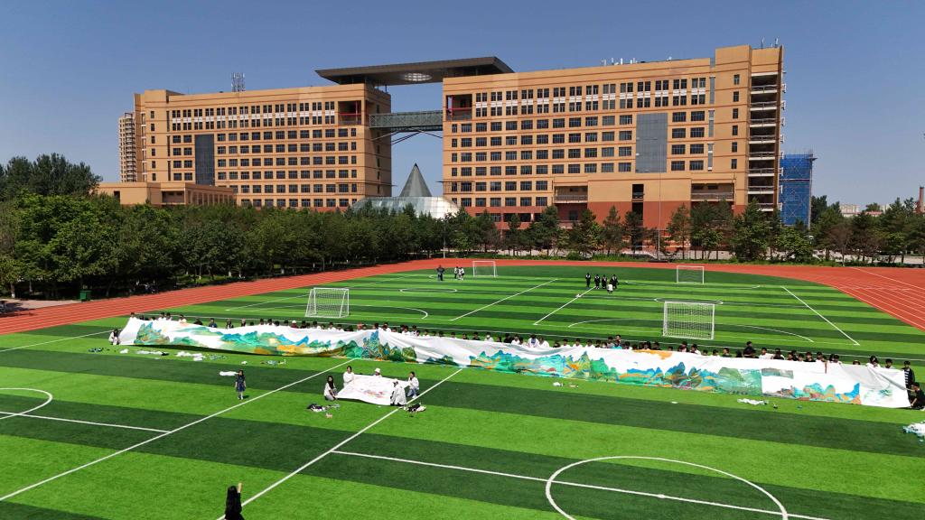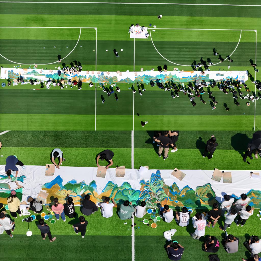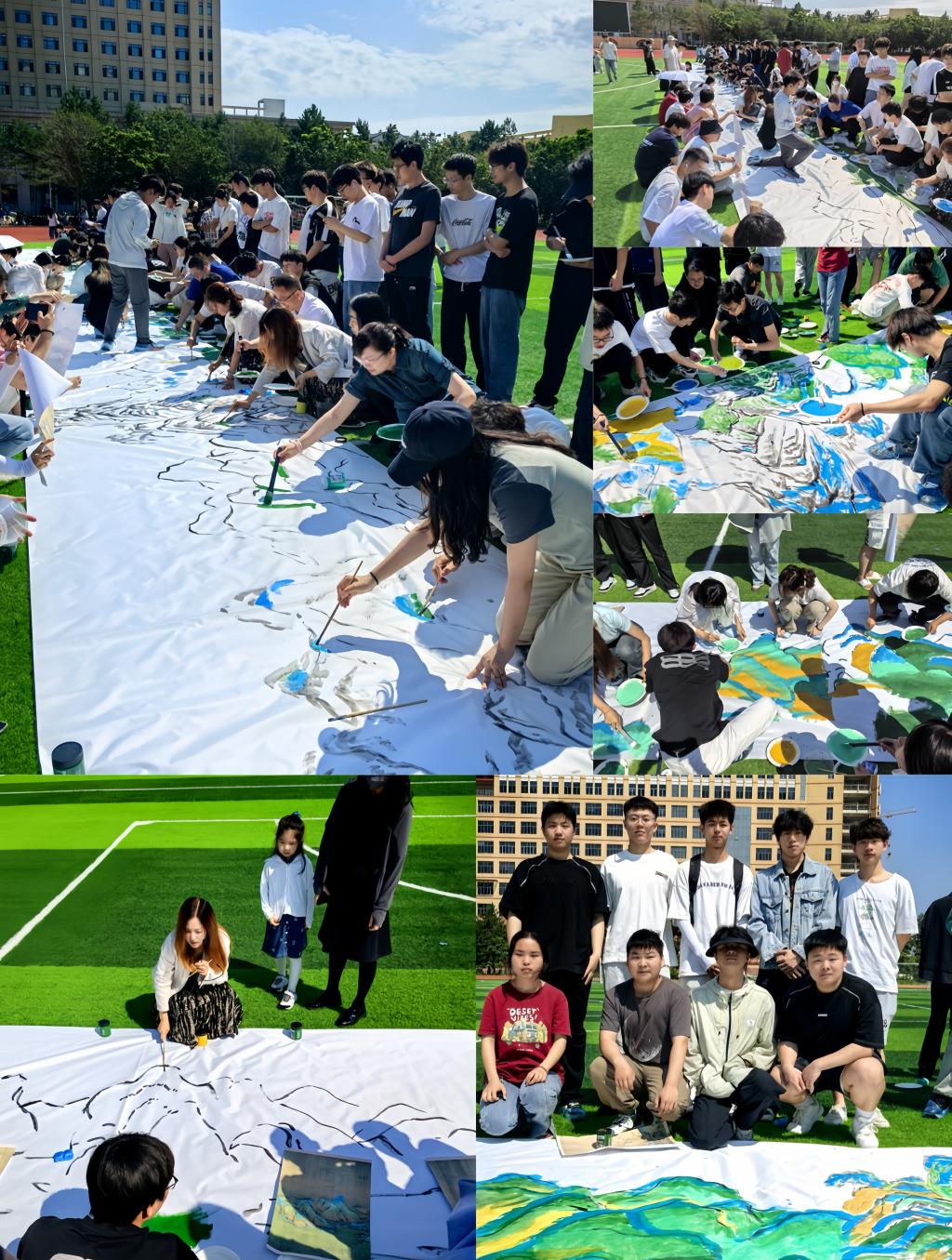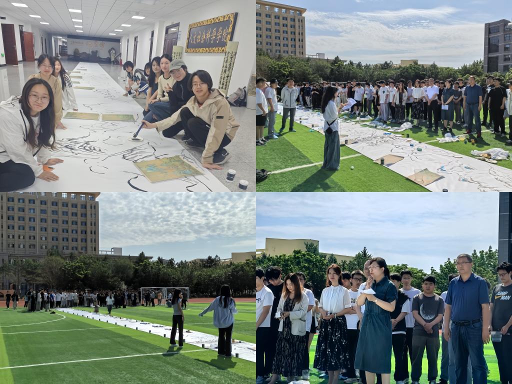 盛夏将至,天晴霁,骊歌声起,又是一年毕业季。在喜迎建党103周年之际,6月16日,人文学院在体育文化休闲广场举办了《千里江山图》青绿山水长卷绘画暨《我的学校》思维导图绘制活动,这是美育浸润校园行动的创新举措,也是人文学院美育教研室带领2023级美育课程学生送给全体2024届毕业生的盛大礼物和美好祝福。