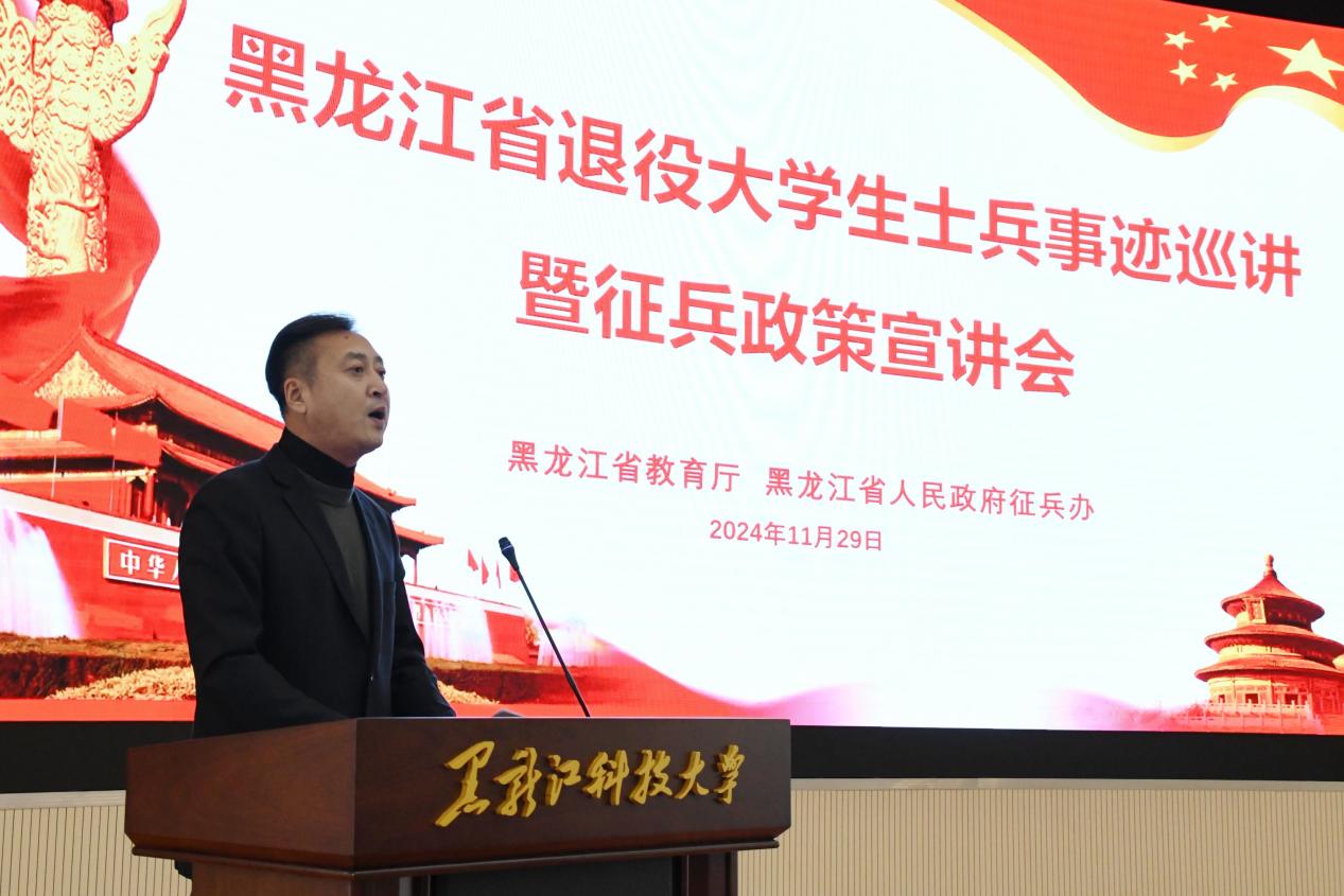 为进一步发挥黑龙江省入伍大学生士兵典型引领示范作用,弘扬青年学子投笔从戎、建功军营的新时代精神风貌,充分调动大学生应征入伍积极性,做好学校征兵政策普及工作,根据省教育厅、省征兵办的工作安排,11月29日下午,我校举办了省高校退役大学生士兵事迹报告巡讲暨征兵政策宣讲会。