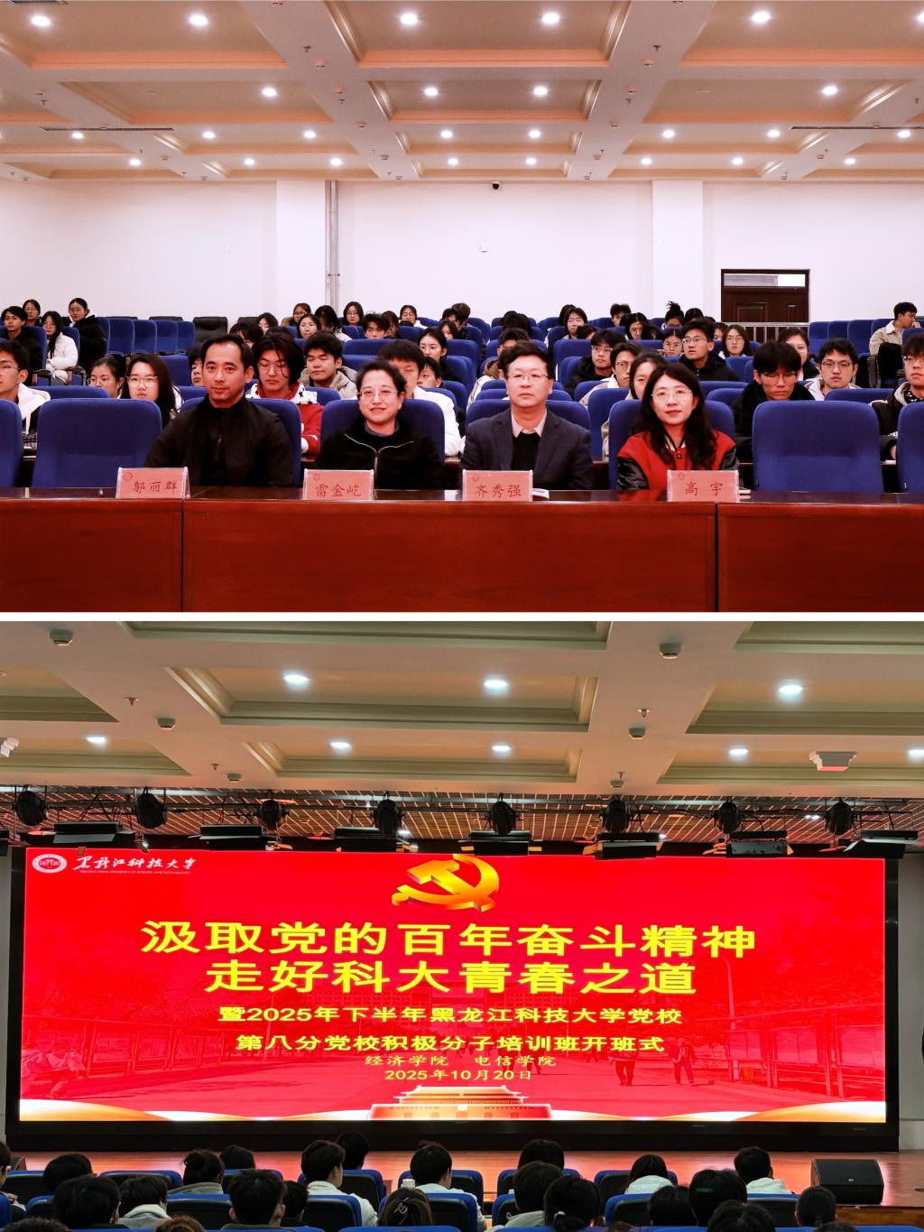 为深入学习贯彻习近平新时代中国特色社会主义思想和党的二十大精神,切实强化对入党积极分子的教育培养工作,不断提升积极分子的政治理论素养和思想认识,10月20日,黑龙江科技大学党校第八分党校在朝阳楼0131室举办2025年下半年入党积极分子培训班开班式。电信学院党委书记齐秀强、经济学院党委书记雷金屹、经济学院党委副书记邬丽群、电信学院副处级辅导员高宇和培训班参训学员参加开班式,开班式由经济学院组织员苏宇主持。