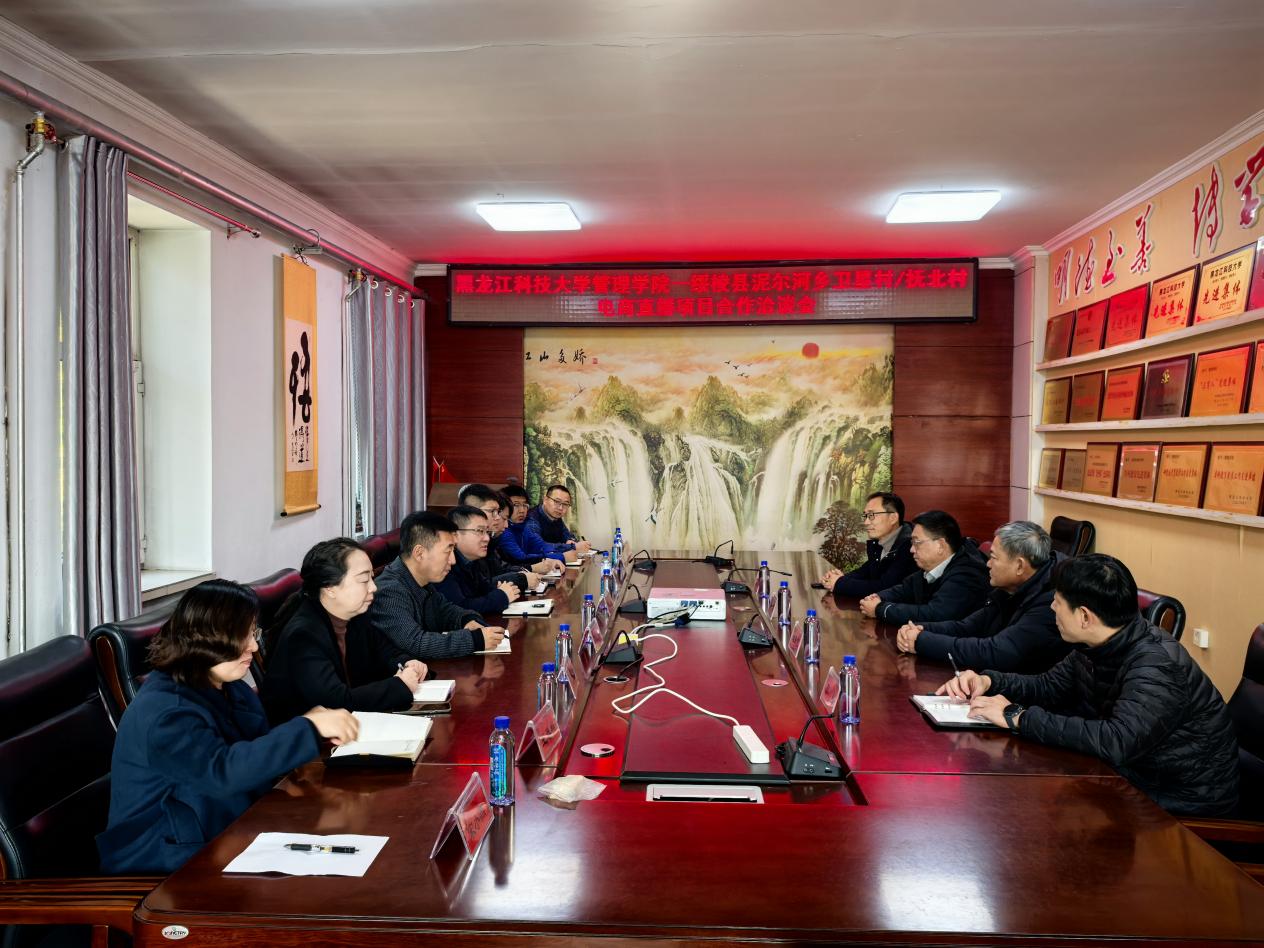 为深入贯彻落实国家乡村振兴战略部署,充分发挥高校学科与人才优势,推动校地企三方资源有机融合,10月20日,黑龙江科技大学管理学院与绥棱县泥尔河乡卫星村、抚北村联合召开电商直播项目合作洽谈会。会议以“电商助农”为纽带,搭建起高校、地方与企业协同发展的沟通平台,同时将思政教育与社会服务深度融合,为培养具有家国情怀与实践能力的复合型人才开辟了新路径。