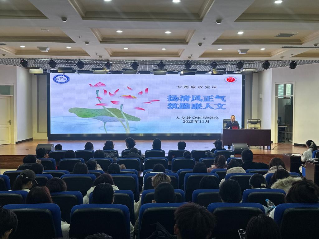11月24日上午,人文学院党委书记孙晓辉以《扬清风正气 筑勤廉人文》为主题,在朝阳楼0131会议室为全院师生党员、教职工和入党积极分子代表上了一堂生动深刻的廉政党课。