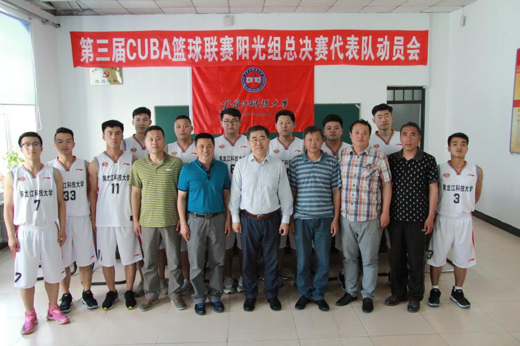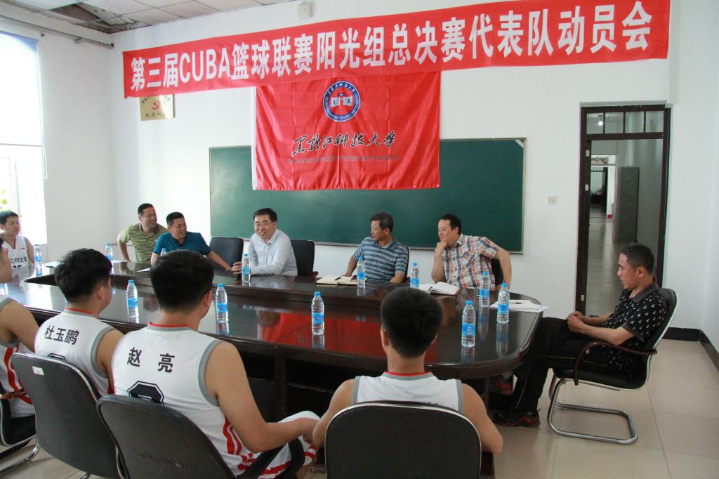 6月13日下午,副校长郝传波、教务处处长宋作忠出席我校男篮参加CUBA全国篮球联赛“阳光组”总决赛动员会。