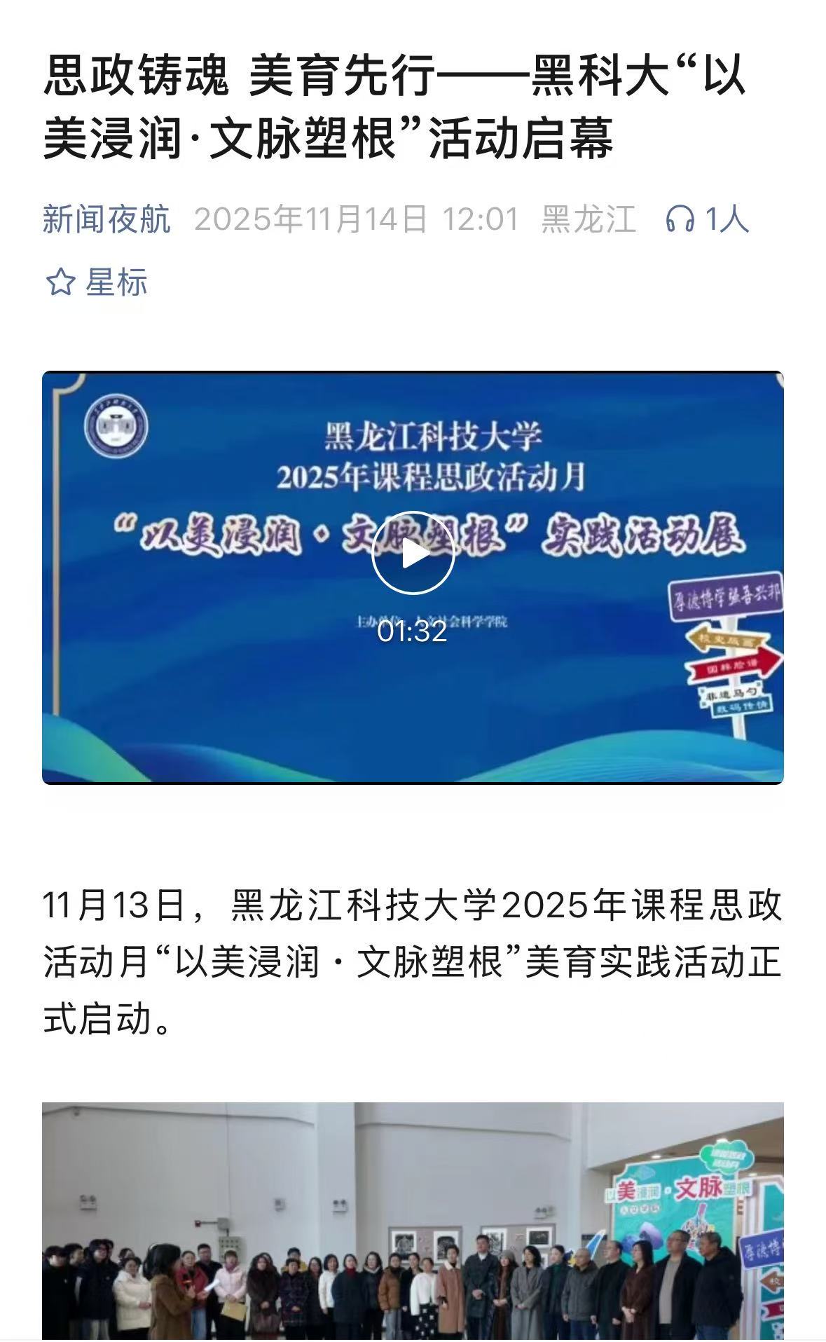 14/ 2025-11新闻夜航:思政铸魂 美育先行——学校课程思政活动月美育实践活动正式启动 -