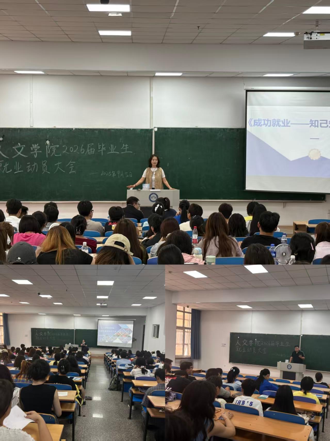 25/ 2025-09人文学院开展2026届毕业生 “就业促进月”系列教育活动为深入落实《黑龙江科技大学关于开展2026届毕业生“就业教育促进月”活动通知》要求,人文学院聚焦2026届毕业生就业核心需求,精准谋划、系统推进“就业促进月”系列教育活动,以靶向施策的服务举措织密就业保障网络,全力护航毕业生高质量就业。“动员领航”明方向,压实责任筑根基学院党委副书记杨凤娟携全体辅导员,面向2026届毕业生召开以“成功就业——知己知彼20问”为主题的就业动员大会。大会以“20问”为引导载体,推动毕业生开展三层递进式深度思考:一是“观己身,辨明心之所向”,引导毕业...