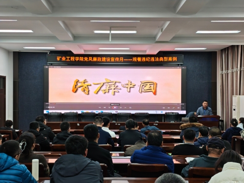 17/ 2025-11矿业工程学院开展党风廉政建设宣传教育月活动为深入学习贯彻党的二十届四中全会精神,认真落实学校有关要求,矿业工程学院紧扣“清风育德守初心遵规守纪筑防线”主题,开展了党风廉政建设宣传教育月系列活动。11月3日,党风廉政建设宣传教育月活动正式启动。学院党委书记赵喜江为全院教职工开展集中纪法学习专题讲座,领学了《中国共产党纪律处分条例》、中央八项规定精神、集中整治违规吃喝等纪法学习内容。学院党委要求各系部结合教学科研、招生就业、推优推免、奖助评审等关键环节开展风险排查,明确廉洁自律底线。11月12日,学院组织全体教师观看了警示...