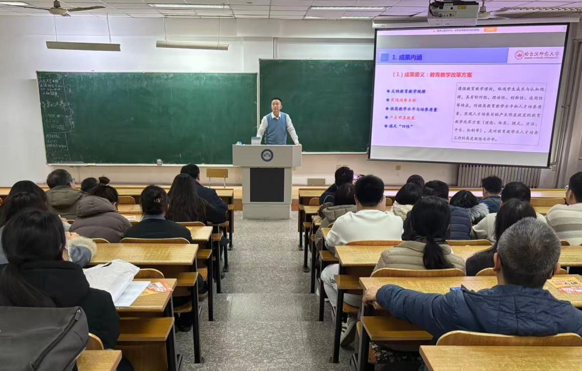 14/ 2025-11理学院开展课程思政教育专家讲坛2025年11月12日,理学院课程思政活动月系列活动教育专家讲坛顺利开展。学院特邀哈尔滨师范大学物理与电子工程学院院长、国家级一流本科专业建设负责人、黑龙江省课程思政示范团队负责人孙文军教授担任主讲嘉宾,学院领导班子成员及全院无课教职工参加本次讲坛。孙文军深耕课程思政与教学改革创新,其牵头完成的多项成果曾获省级以上教学成果奖。本次讲坛中,他结合自身多年实践经验,以价值引领为核心,将思政元素有机融入专业...