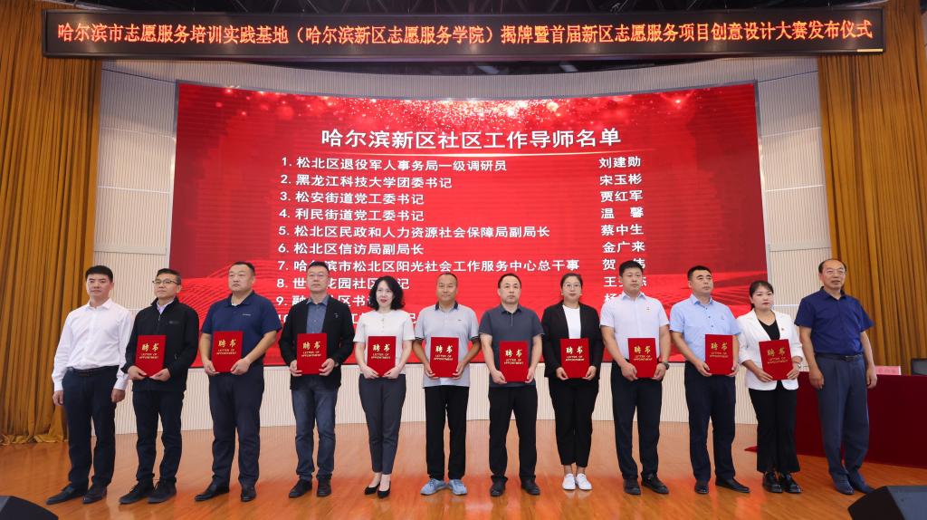 钟波与校纪委书记(监察专员)王延高为新区志愿服务(社区干部)学院聘请的“哈尔滨新区志愿服务导师”和“哈尔滨新区社区工作导师”代表颁发了聘书。
