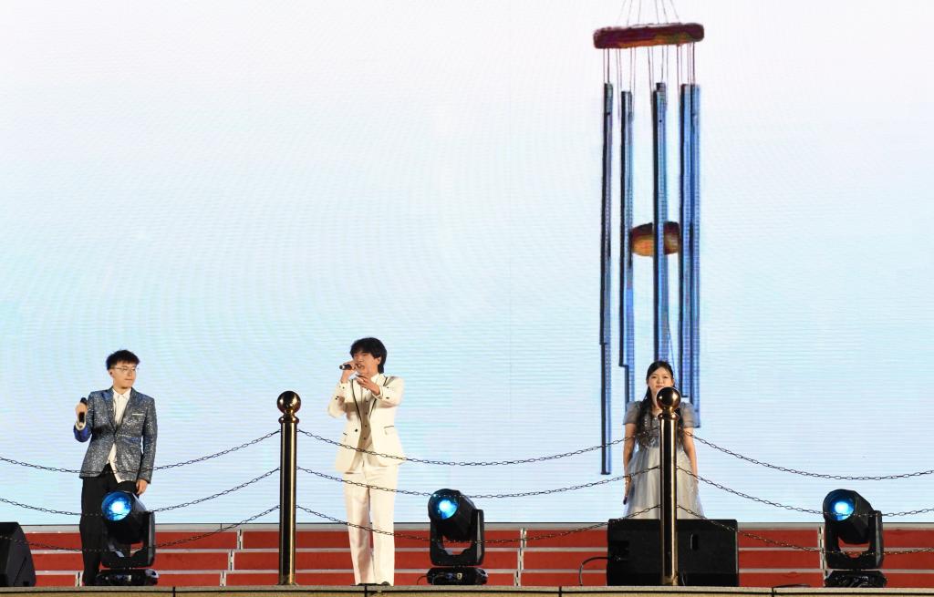 在第二篇章《踔厉奋发,逐梦科大》中,飞跃之声广播电台表演的音诗画作品《科大芳华》,讲述了一代又一代科大人守正创新、踔厉奋发、自强不息、勇往直前的奋斗故事,带领全场师生共同走过了黑龙江科技大学77年的科大岁月,彰显了学校厚重的历史底蕴和红色基因,为全体2024级新生上了一堂生动的校史校情微团课。各学院优秀学生代表登台亮相,集中展示了学校丰硕的育人成果,汇报了科大学子在青春的赛道上奋力跑出的最好成绩,“黑金科技”石墨烯科研团队科研成员研22-12班张宇豪代表在校生发言,为大家展示了“黑科技”——第三代石墨烯烧烤炉科研成果,将新鲜出炉的肉串分享给幸运观众们,现场热闹非凡。校园十佳歌手们带来歌曲串烧《若月亮没来》《平凡之路》《直到世界尽头》《一路生花》,激情昂扬的青春旋律,让人心潮澎湃。管理学院青年学生带来的舞蹈《扬帆起航》,扇影交错,大气磅礴的舞姿,传递着我校青年学生追逐梦想、勇往直前的坚定信念。