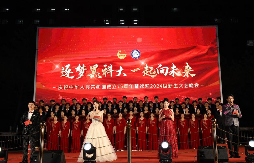 为热烈庆祝中华人民共和国成立75周年,激励和引导全校师生大力弘扬爱国主义精神,鼓舞和号召2024级新同学以积极向上、奋发进取的姿态开启人生新的征程,9月23日18:30,学校在体育文化休闲广场隆重举办“逐梦黑科大、一起向未来”庆祝中华人民共和国成立75周年暨欢迎2024级新生文艺晚会。校党委书记周宏力,校党委副书记桑玉军,副校长陈凯云、张宝成、赵振民、谭旭红,纪委书记王延高,党委常委、宣传统战部部长王洪秋,党委常委、组织部部长王志磊,学校办公室、学生处、教务处、校团委等部门负责人,各学院党委书记、副书记,全校专职学生工作干部与5000余名2024级新生共同观看了晚会。