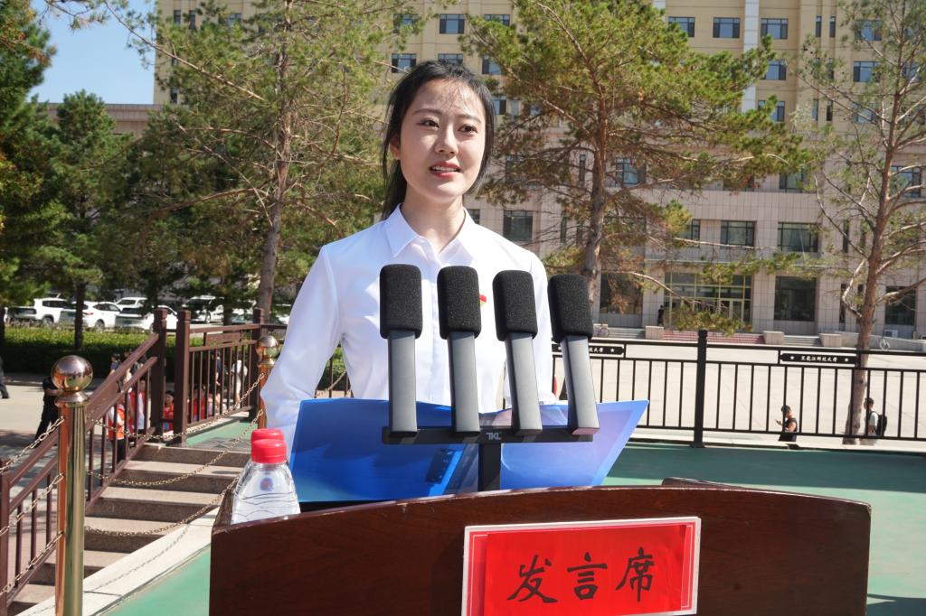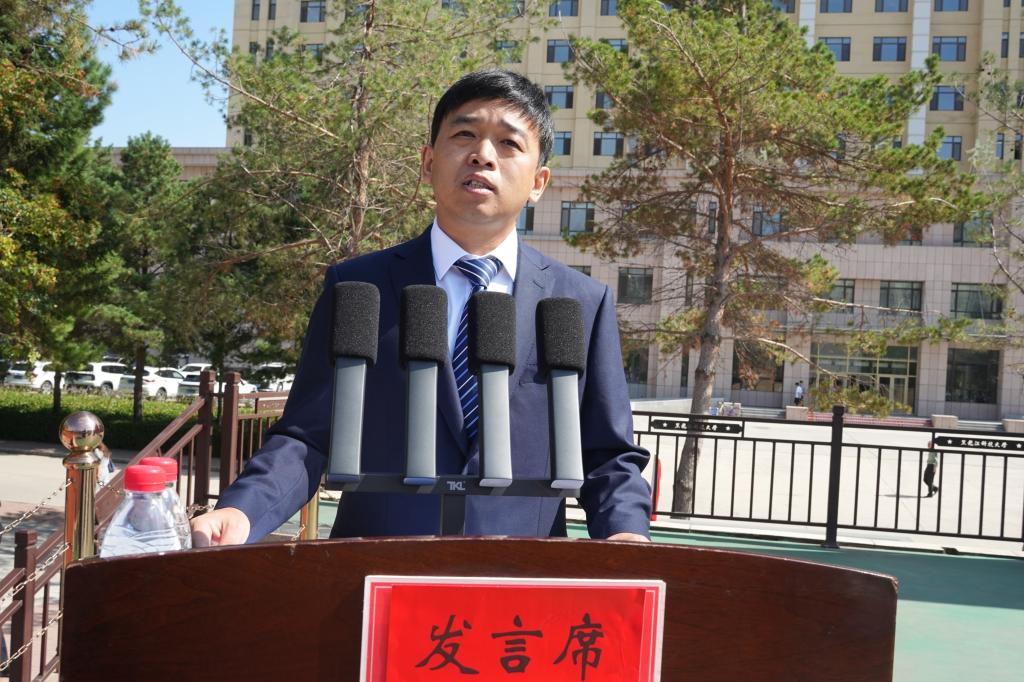 矿业工程学院院长、博士生导师、秦涛教授作为教师代表发言,勉励新生打开仰观星空的眼界、培养俯察大地的眼力、开启远眺未来的眼光,为黑科大争光,为祖国强大挺膺担当。