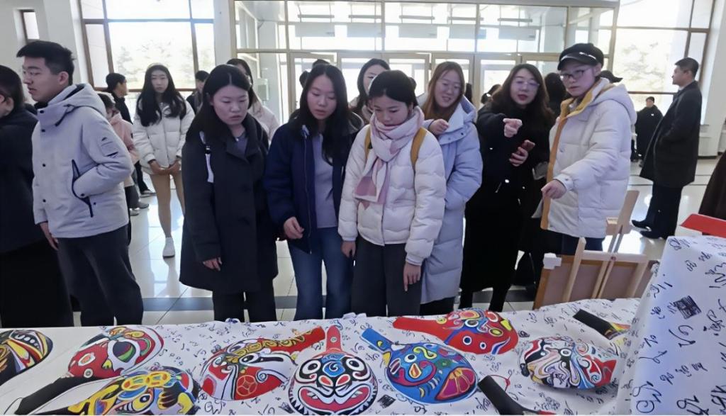 校史版画系列以刀为笔,将学校从艰辛初创到服务能源报国的红色历程精准镌刻,使黑科大精神谱系实现可视化呈现;国粹脸谱作品在传统纹样基础上融入现代设计语言,非遗马勺则以浓烈色彩诠释传统美学与龙江坚韧质朴的地域精神在此碰撞共生;数码传情创作专区更显跨学科活力,学生们用镜头中的“数码美景”演绎着古今美学的奇妙嬗变,印证了学校“五育并举”的人才培养体系下课程思政的实践成效。