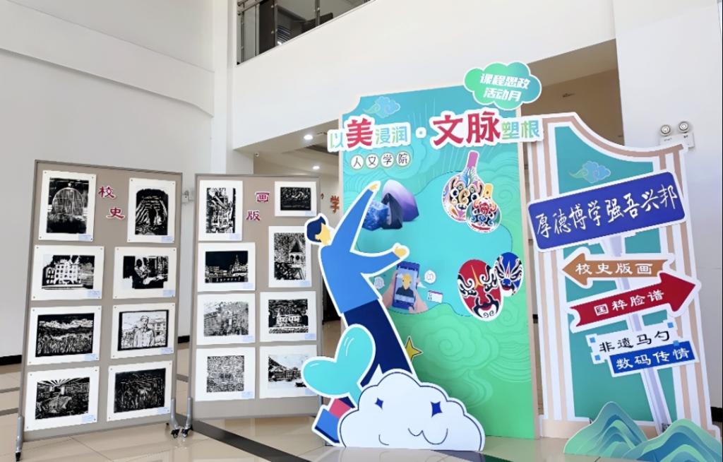 现场设置的核心展区内,四大主题作品群构筑成流动的 “美育思政课堂”。“美育是无声的思政,文脉是永恒的根基。”人文学院院长曹景萍表示,这种创作理念与我校课程思政建设思路高度契合,彰显我校特色鲜明的育人体系。