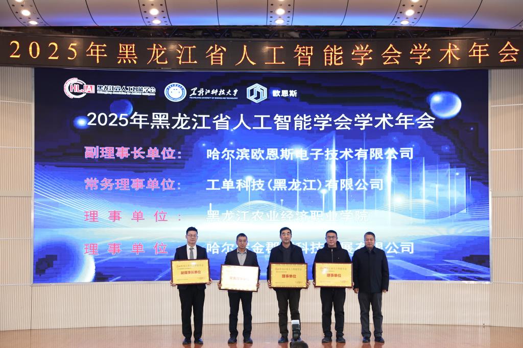 本次年会,黑龙江省人工智能学会纳入了新的团体会员单位,吕强为副理事长单位哈尔滨欧恩斯电子技术有限公司、常务理事单位工单科技黑龙江有限公司、理事单位黑龙江农业经济职业学院、理事单位哈尔滨金郡源科技发展有限公司分别颁发了证书。