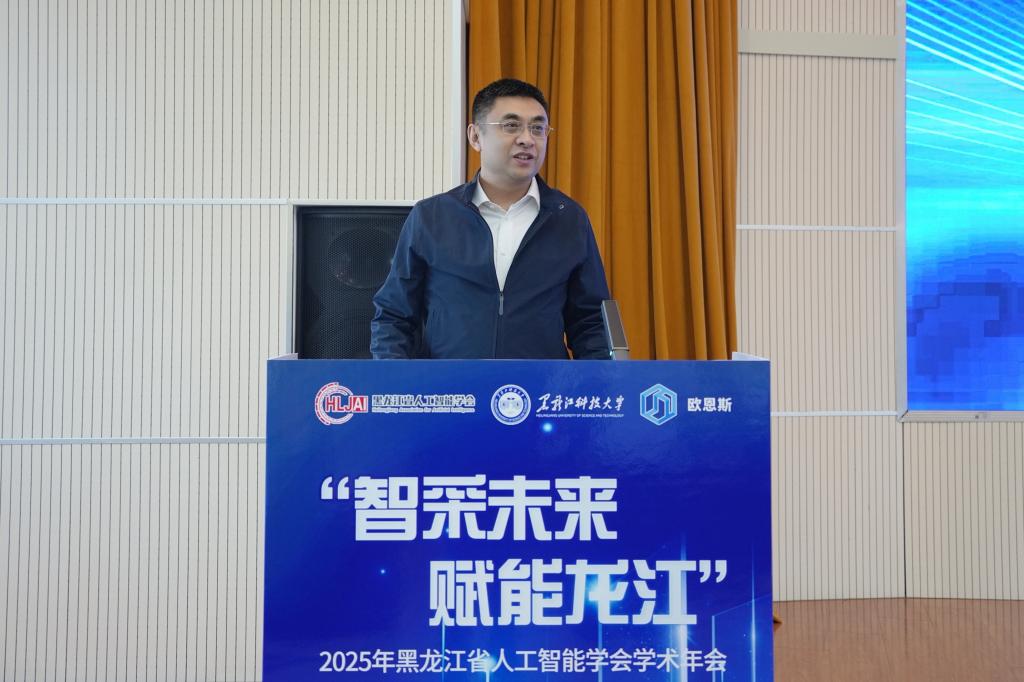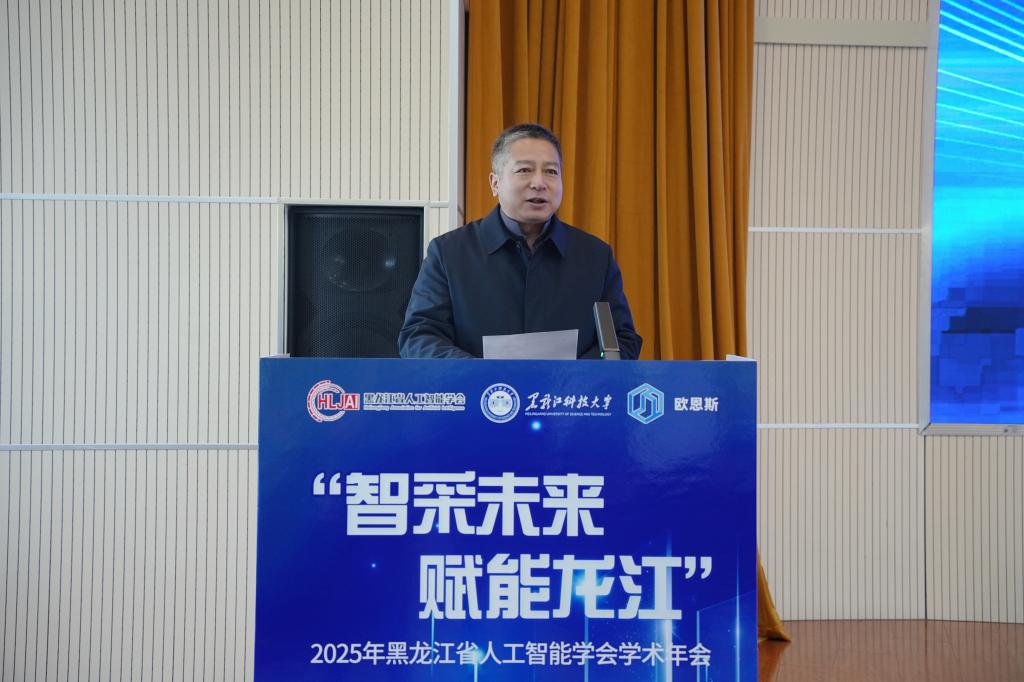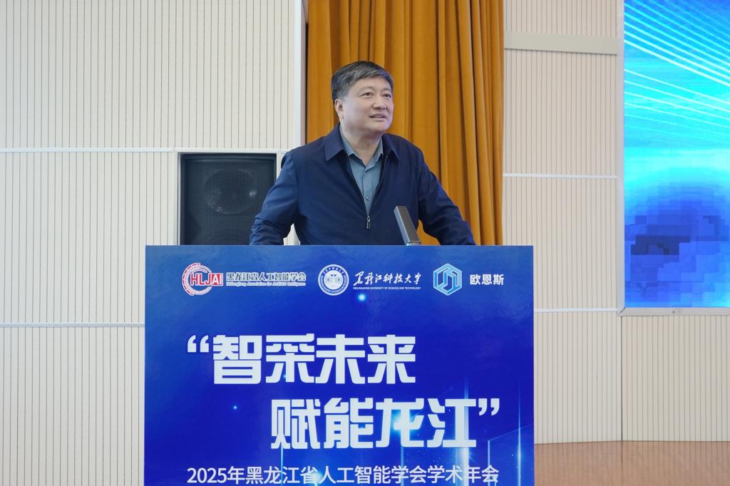 黑龙江省科学技术协会学术部部长吕强向大会致辞。吕强对黑龙江省人工智能学会2025年的工作给予了充分肯定和高度赞扬,预祝本次学术年会取得圆满成功,并希望学会再接再厉,共同为人工智能产业的蓬勃发展贡献智慧与力量。