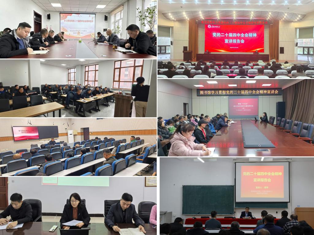 为深入学习、宣传贯彻党的二十届四中全会精神,切实将全校师生的思想与行动统一到党中央的决策部署上来,近期,学校宣讲团成员围绕党的二十届四中全会精神和《习近平谈治国理政》第五卷内容以及省委十三届八次全会精神,紧密结合学校实际情况,在全校26个基层单位党组织展开了集中理论宣讲活动,有力推动党的二十届四中全会精神往深里走、往实里走。