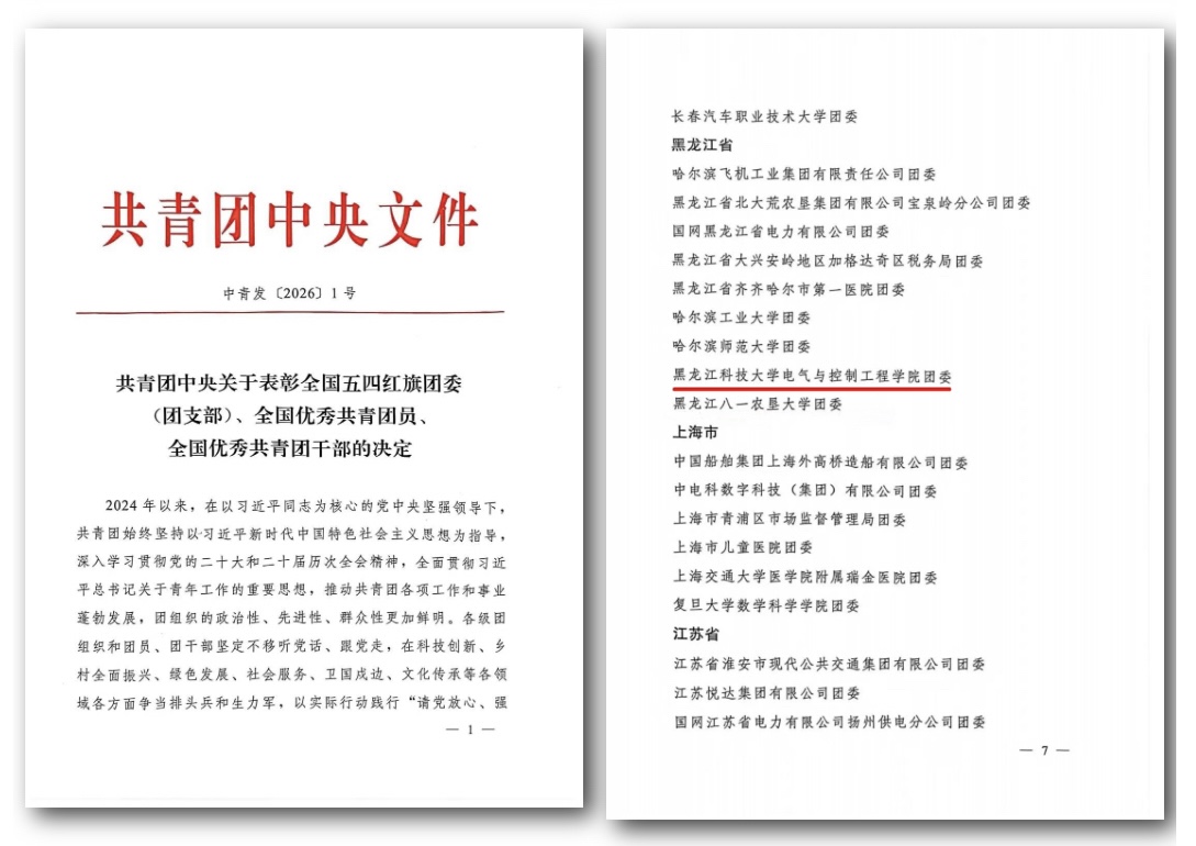 近日,《共青团中央关于表彰全国五四红旗团委(团支部)、全国优秀共青团员、全国优秀共青团干部的决定》发布,我校电气与控制工程学院团委荣获“全国五四红旗团委”称号。该称号是共青团中央授予全国基层团组织的最高荣誉。