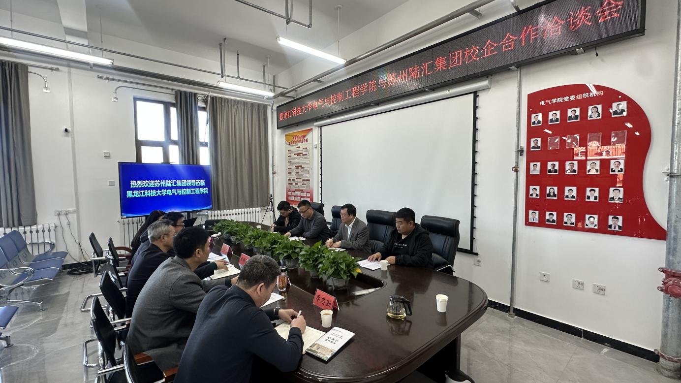 10月22日,电气与控制工程学院与苏州陆汇集团校企合作洽谈会在学院举行。苏州陆汇集团副总经理陈一兵一行,电气学院党政领导参加会议。