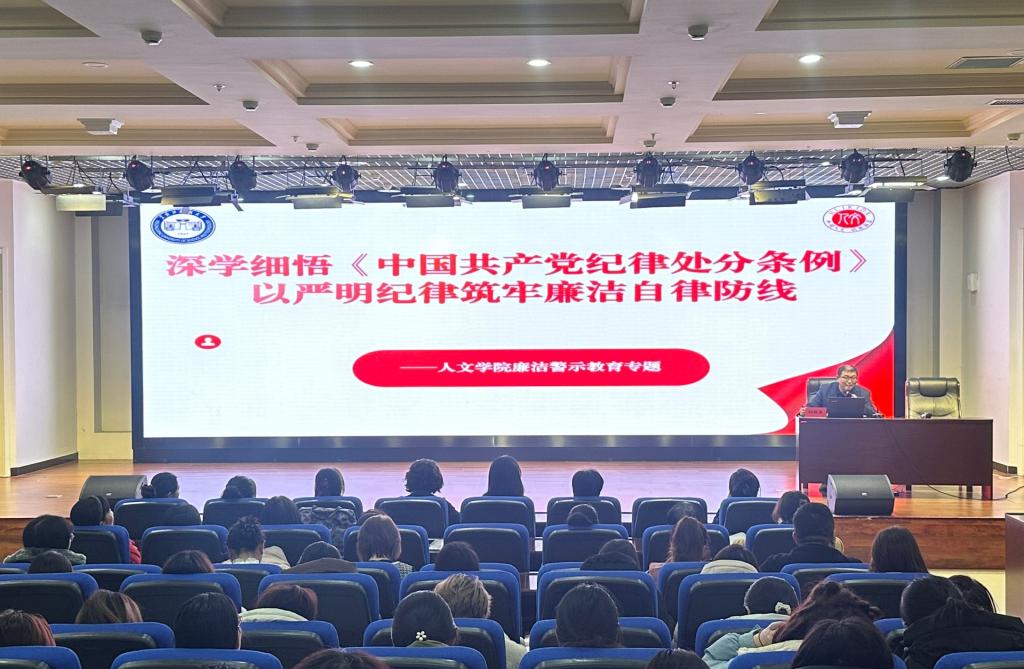 11月24日上午,人文学院党委书记孙晓辉以《扬清风正气 筑勤廉人文》为主题,在朝阳楼0131会议室为全院师生党员、教职工和入党积极分子代表上了一堂生动深刻的廉政党课。