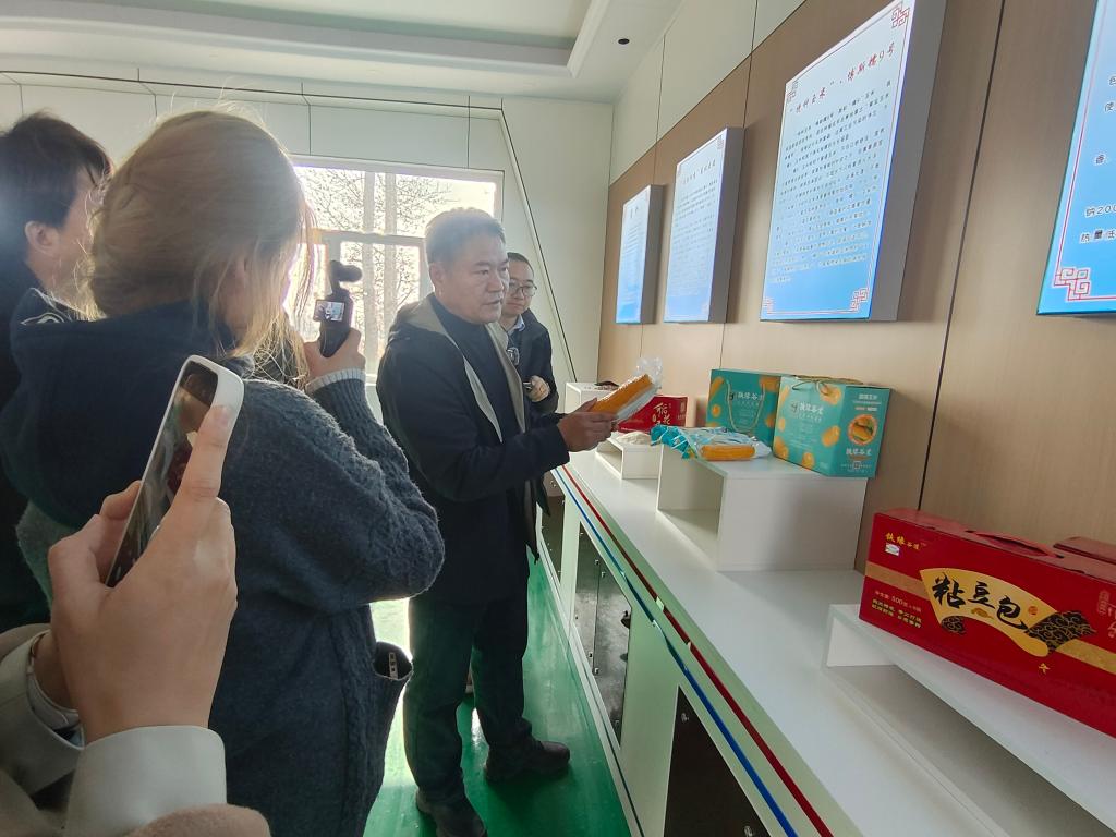 自10月20日,管理学院与绥棱县泥尔河乡卫星村、抚北村联合召开电商直播项目合作洽谈会之后,学院依托东北亚跨境电商产业学院与俄速通集智科技有限公司联合组建一支由企业专家、专业教师和学生骨干为主体的师生电商直播志愿服务团队,深入泥尔河乡卫星村、抚北村开展助农直播实地调研。在铁缘谷道粘豆包和大酱生产企业,调研团队参观了企业生产车间和产品展示中心,并与企业领导和员工进行了座谈交流,为线上直播做好准备。