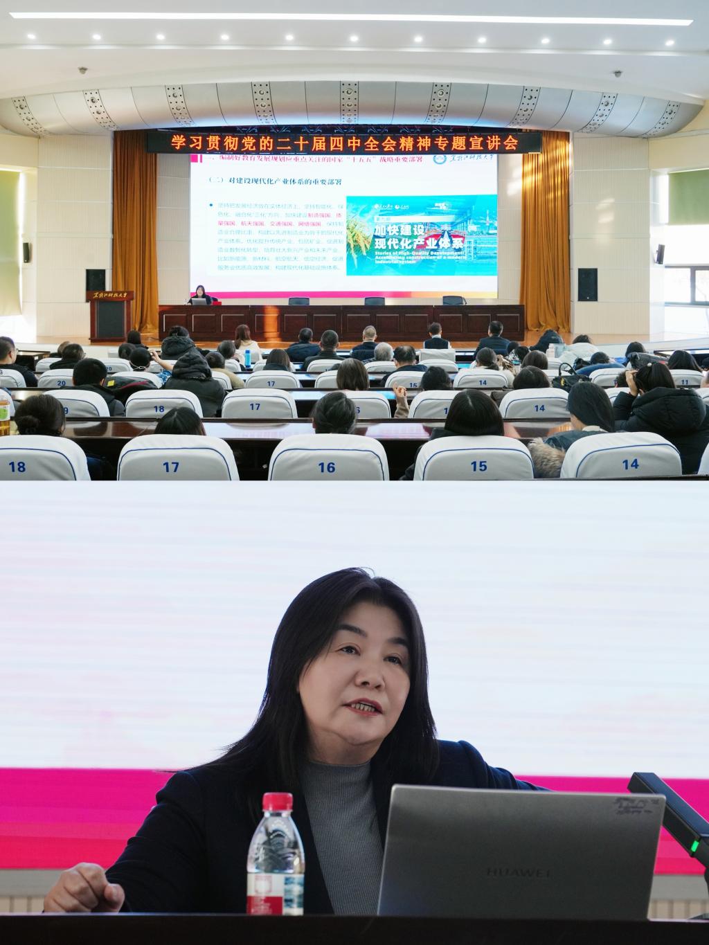 会议伊始,邀请校党委常委、副校长谭旭红以《深入贯彻落实党的二十届四中全会精神 以高水平规划引领高质量发展》为题,为全体教职工作了一场主题突出、视野宏阔、联系实际的专题宣讲报告。她要求学院班子和全体教职工要以更高目标、更实举措抓好四中全会精神的贯彻落实,集广大师生和校友之智,认真编制好学院未来发展规划,切实把思想和行动统一到党中央决策部署上来。