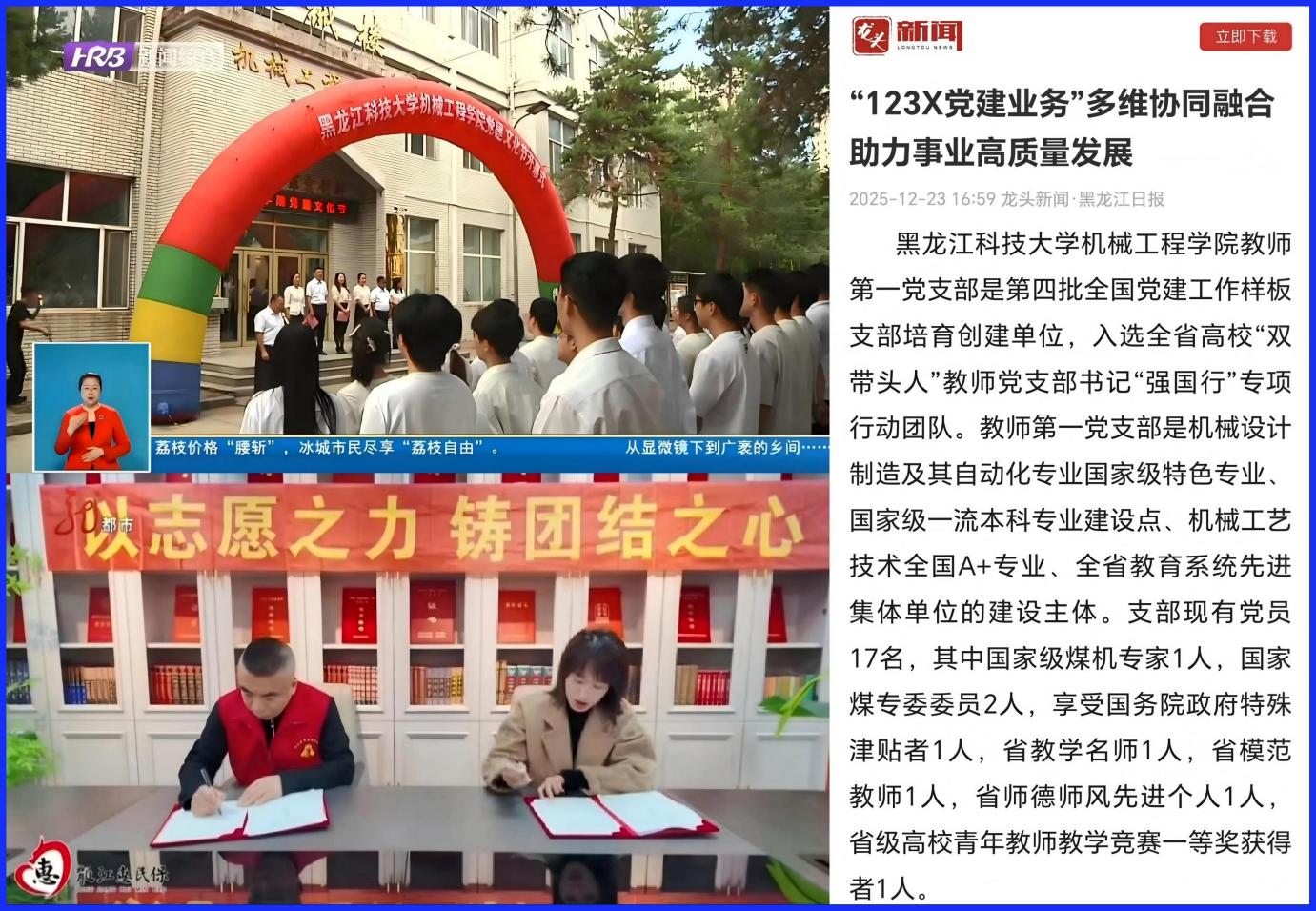6月20日,哈尔滨电视台新闻综合频道报道了学院党建文化节活动;12月5日,黑龙江电视台《新闻夜航》栏目报道了学院“锋芒”志愿服务队与哈尔滨市雷锋纪念馆共同开展的志愿服务活动;12月23日,黑龙江日报龙头新闻报道了学院教师第一党支部作为全国党建工作样板支部培育创建单位的典型做法。