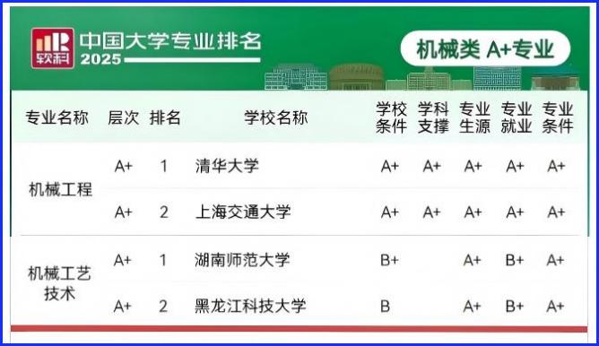 8月15日,“2025软科中国大学专业排名”正式发布。机械工艺技术专业继2024年首次获评A+后,2025年再次获评A+,继续排名全国第2。连续2年获得该评级,充分彰显了我校机械类专业在国内的较高地位和持续发展实力。