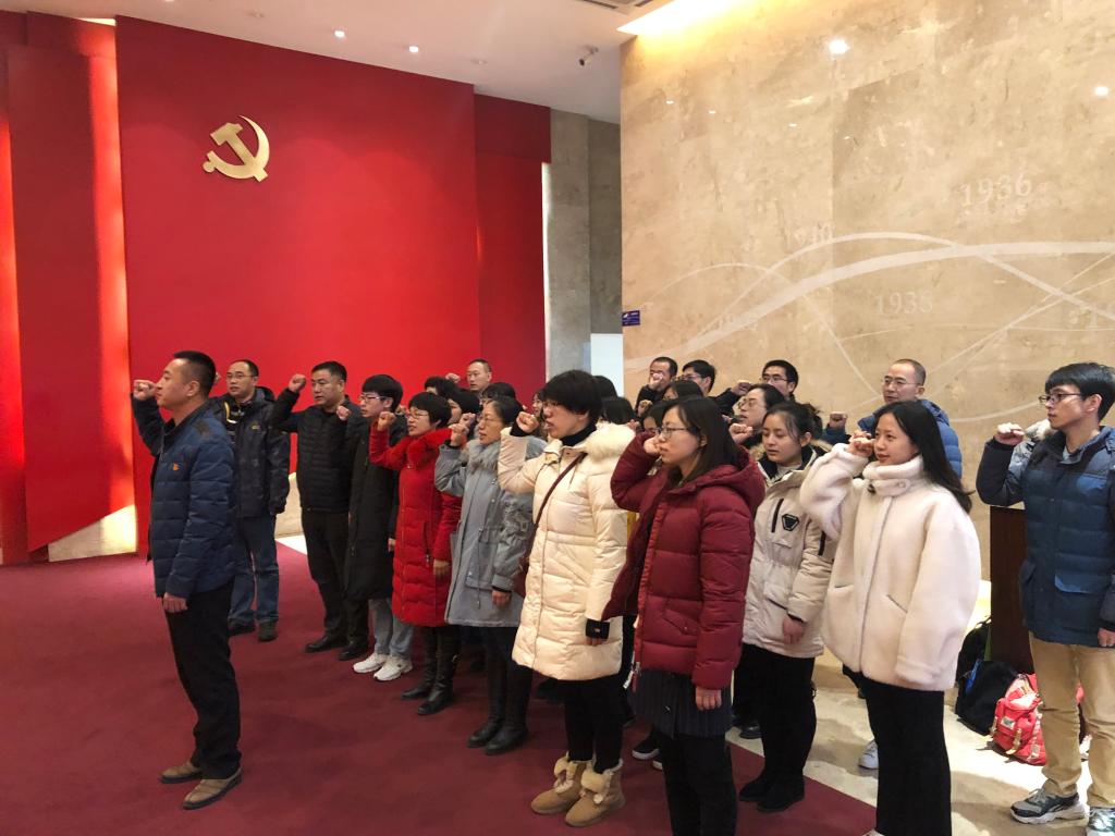 最后,在庄严的党旗下,全体参观的教师党员和学生党员重温了入党誓词。铮铮誓言,永记心中,再一次激发起同志们奋斗终身的信念和担负起光荣使命与责任的决心。