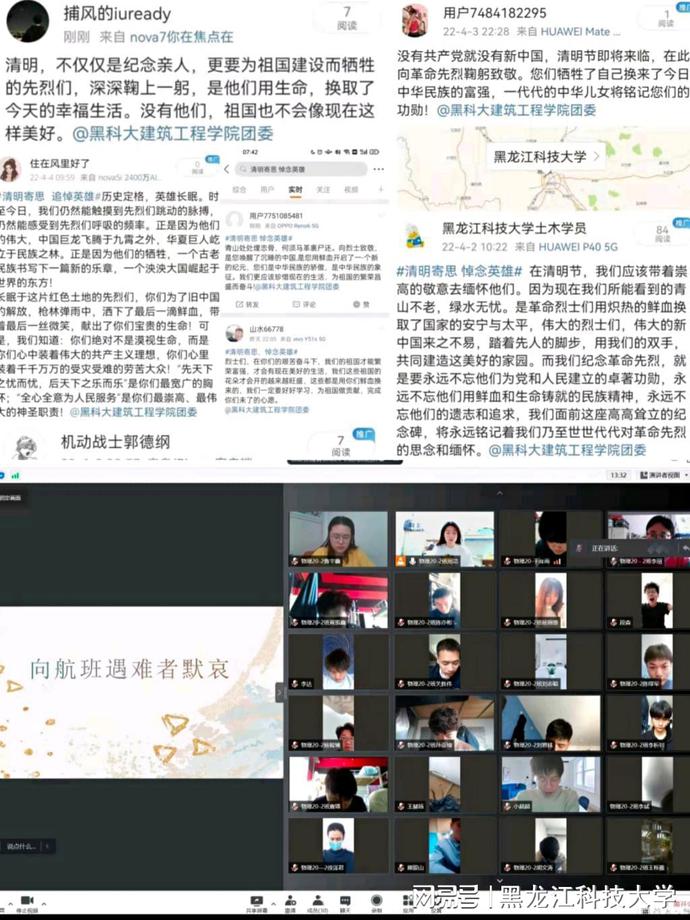 学校各团属新媒体阵地利用微信公众号宣传英烈感人事迹,展示烈士遗物、家书事迹史料以及红色经典影视文化作品;飞跃之声校园广播新增《苦难辉煌》、《家书里的百年信仰》等红色经典栏目;建筑工程学院团委开展了“清明寄思 悼念英雄”微博话题分享活动,组织观看了电影长津湖;物理20-2班团支部开展了红色经典诵读活动,围绕百年党史、团史、英烈故事、战疫故事等内容进行分享,为MU5735航班的遇难者们进行集体默哀,不断弘扬我国优良革命传统及爱国主义精神。