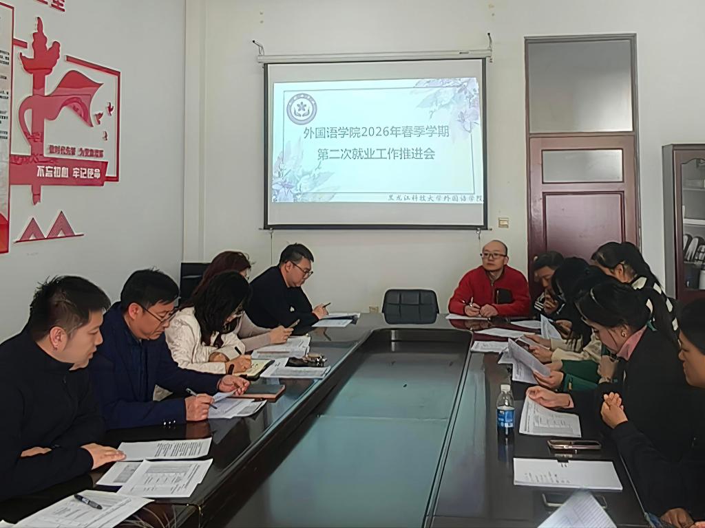 31/ 2026-03外国语学院召开2026届毕业就业工作推进会为扎实推进毕业生就业工作,奋力提升就业育人质效,3月27日下午,外国语学院在科厦921会议室,分专业召开2026届毕业生就业工作推进会。学院领导班子成员、各专业教师及全体辅导员参加会议。英语专业就业工作推进会俄语专业就业工作推进会商务英语专业就业工作推进会会上,党委副书记全金峰传达学校就业工作推进会议精神,通报英语、商务英语、俄语三个专业毕业生当前就业去向落实情况,明确现阶段就业工作核心任务与攻坚重点。各专业教师逐一汇报所带学生就业工作进展、现存问题及下一步促就业举措,学院领导...