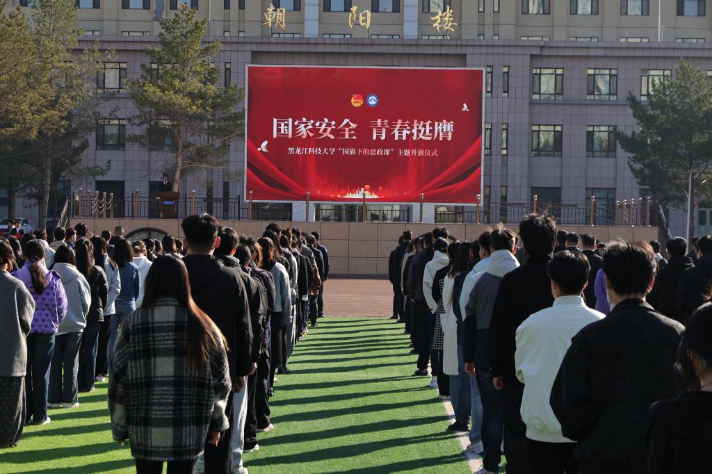清晨7时30分,五星红旗伴随着雄壮激昂的《义勇军进行曲》迎着朝阳冉冉升起,全体师生行注目礼,齐声高唱国歌,抒发对伟大祖国母亲的无限热爱和崇高敬意。青年学生共同观看了国安宣传片《国安家安天下安》。随后,青年学生代表在国旗下发出倡议《青春话语筑牢安全防线 青年担当书写时代答卷》,号召广大青年学生将国家安全意识根植于心,践之于行,以青年担当书写时代答卷,为维护国家安全贡献青春力量。
