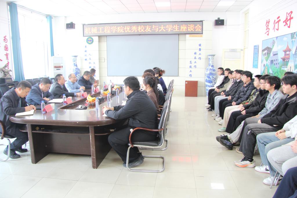3月27日,机械工程学院在学院二楼会议室召开优秀校友与大学生座谈会。沈阳校友会会长、沈阳中辰钢结构工程有限公司总经理、机制86级校友卢兆会;沈阳校友会副会长、抚顺晋屏贸易有限公司总经理、矿机88级校友郎书缘应邀与大学生共话成长、共叙情谊、共启未来。学院领导班子成员参加座谈。会议由学院党委书记吕刚主持。